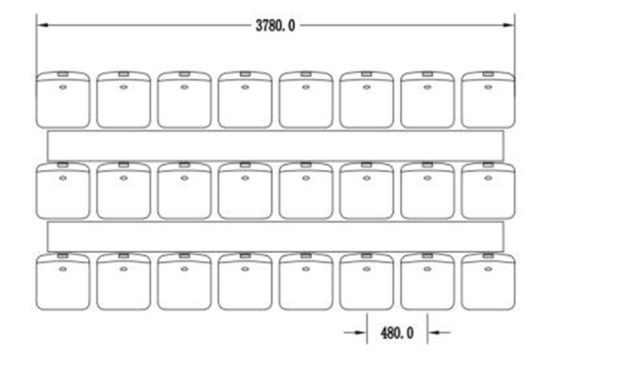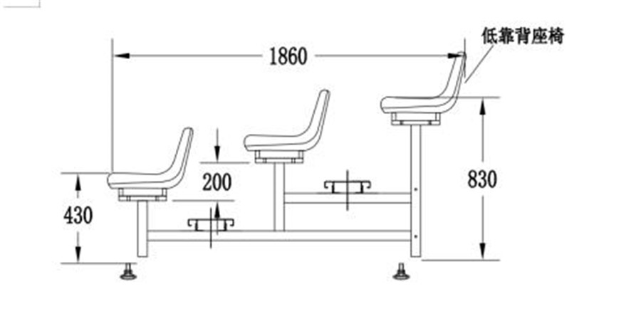 看臺設計為3層,長3780mm,寬1860mm,最后一層座面高830mm。該高度不設計護欄。每組看臺最可坐24人;