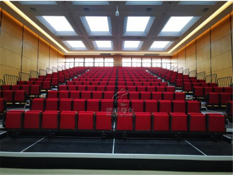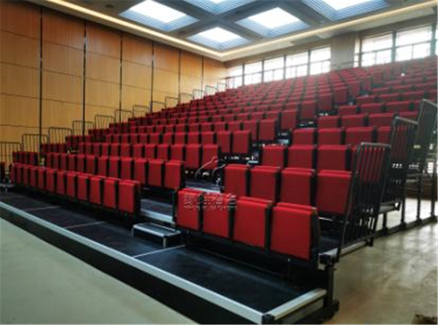 活動看臺座椅采用翻板包棉椅,后置式安裝。座椅通過專用工具手動整排翻動,翻動過程靈活、輕巧。