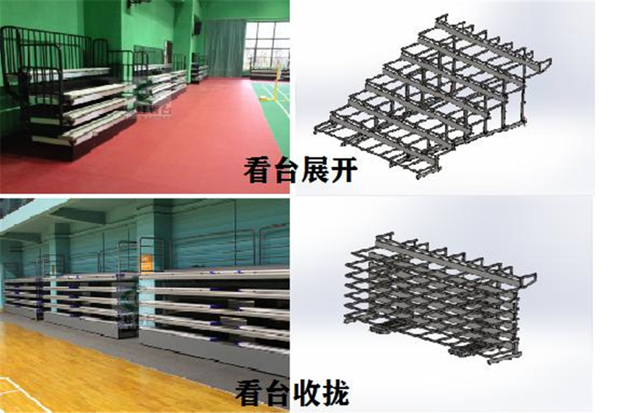 伸縮看臺也稱為活動看臺,活動看臺的稱呼是相對于固定看臺而來,伸縮看臺拉伸成臺階形時,看臺上的座椅供觀眾舒適地欣賞節(jié)目,收縮成匣子狀(似抽屜)時則占用很少的空間,讓出場地以安排他用。伸縮看臺可充分利用室內(nèi)的有限面積,滿足不同功能情況下的多座位要求。伸縮看臺廣泛應(yīng)用于體育館、會議室、示教室、演播廳、多功能廳等。